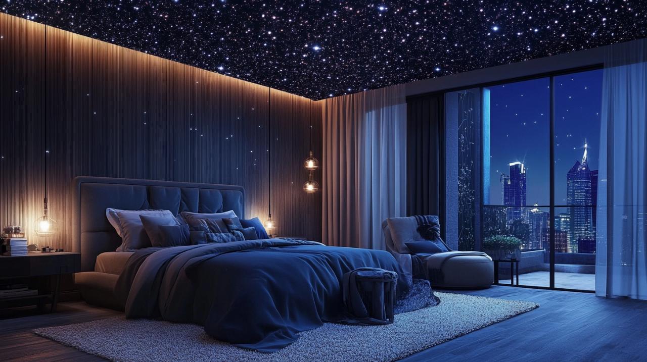 guía para la instalación de techos estrellados con fibra óptica en dormitorios relajantes